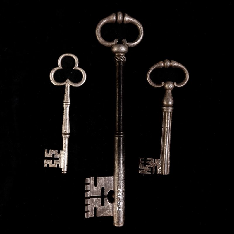 Tre chiavi in ferro forgiato. Francia, XVIII secolo