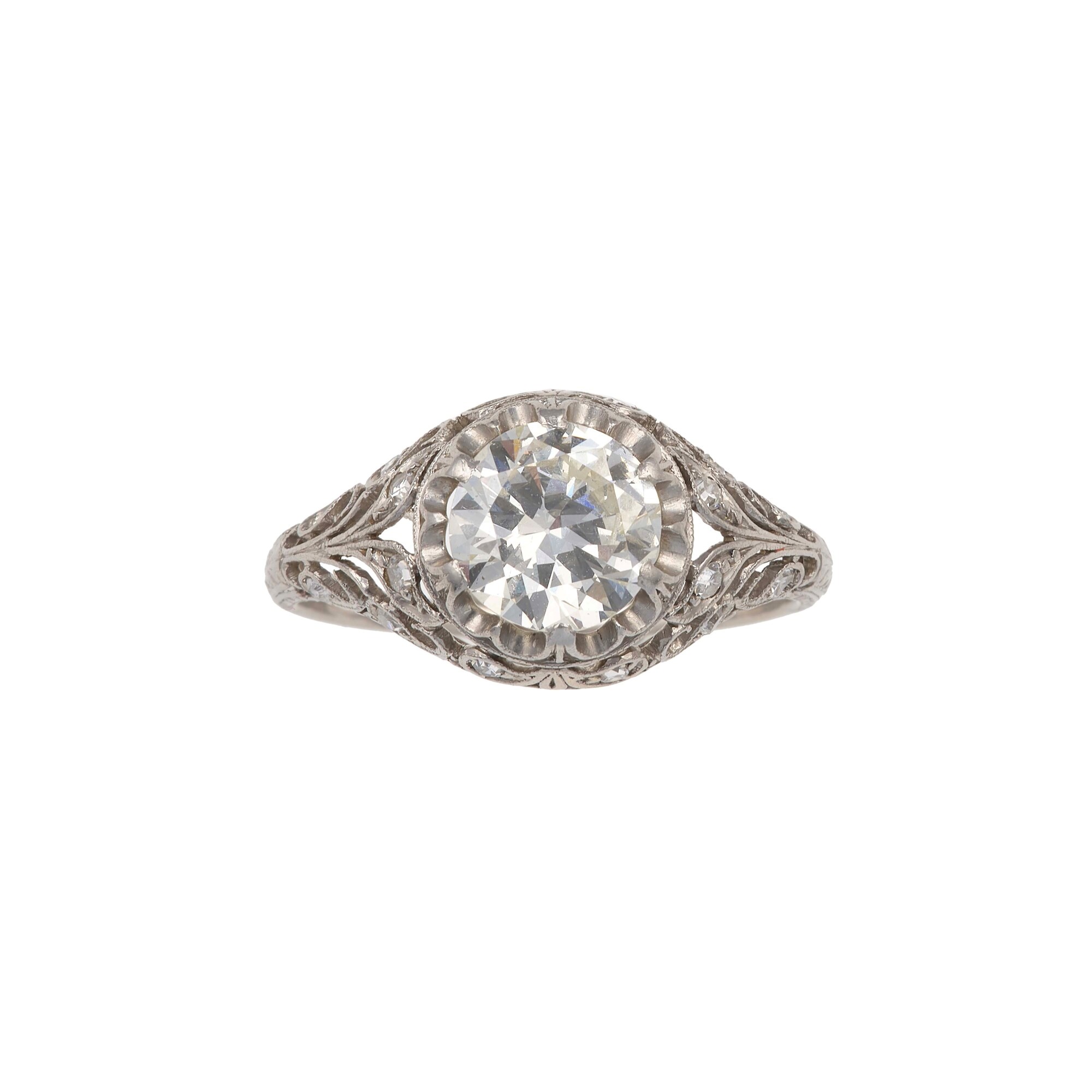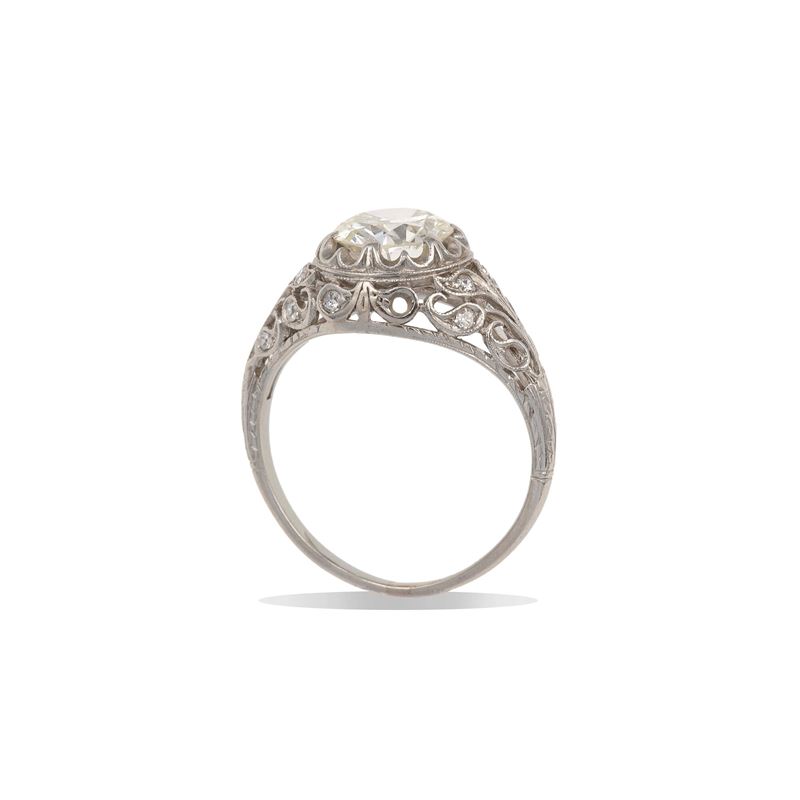 montatura in platino, incisa, con piccoli diamanti