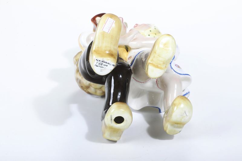 Terraglia. Marca: “C.I.A. Manna Torino Allegro Ritorno”. Altezza cm 33,5. Conservazione: qualche piccola sbeccatura ai bordi.