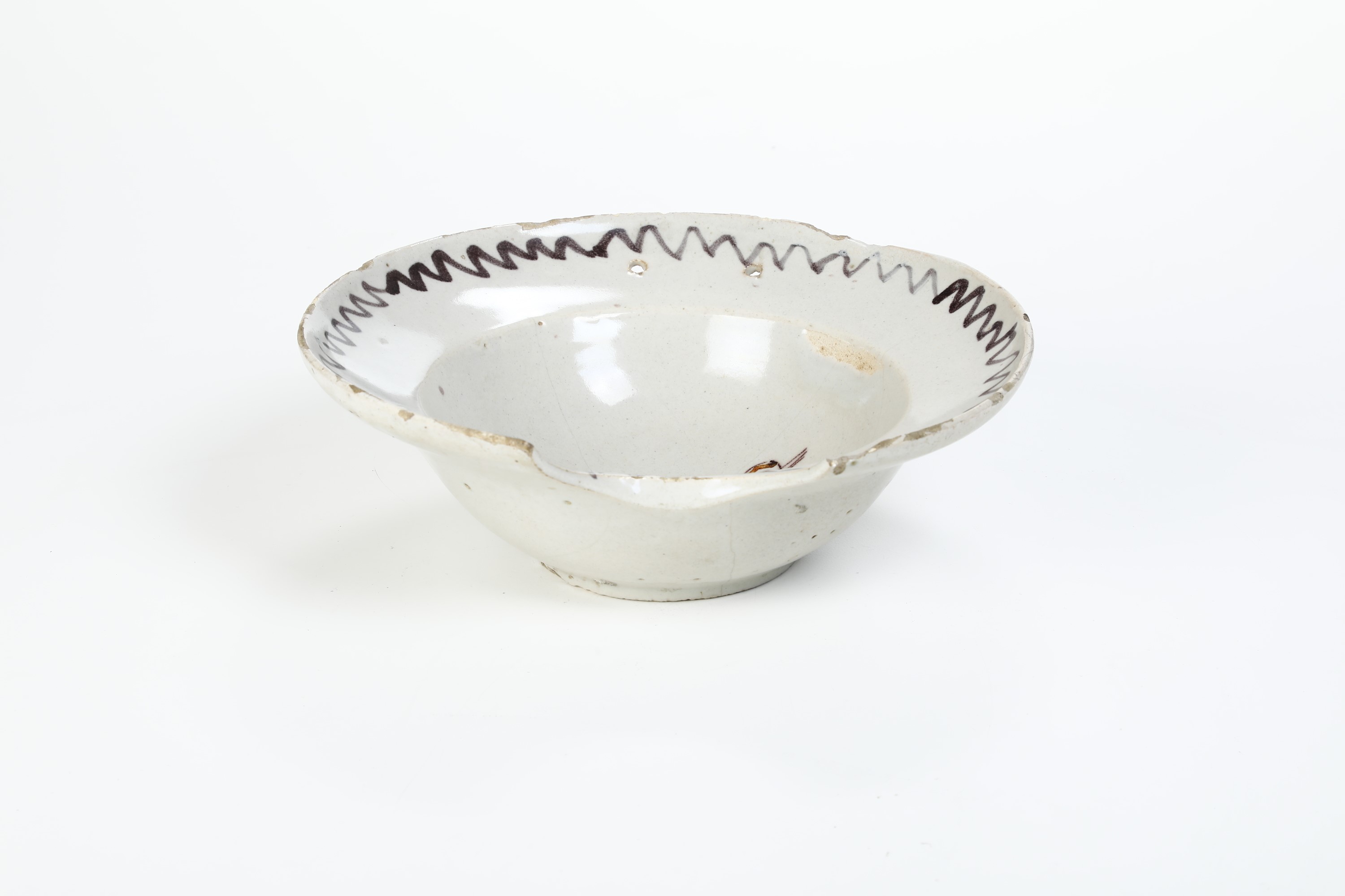 Maiolica. Marca: assente. Diametro cm 26,6. Conservazione: qualche sbeccatura al bordo; insignificanti felature.