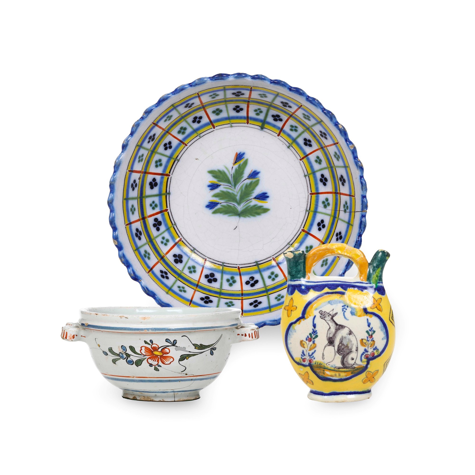 Bacinella, legumiera e fiaschetta. Francia e Spagna, XIX secolo.