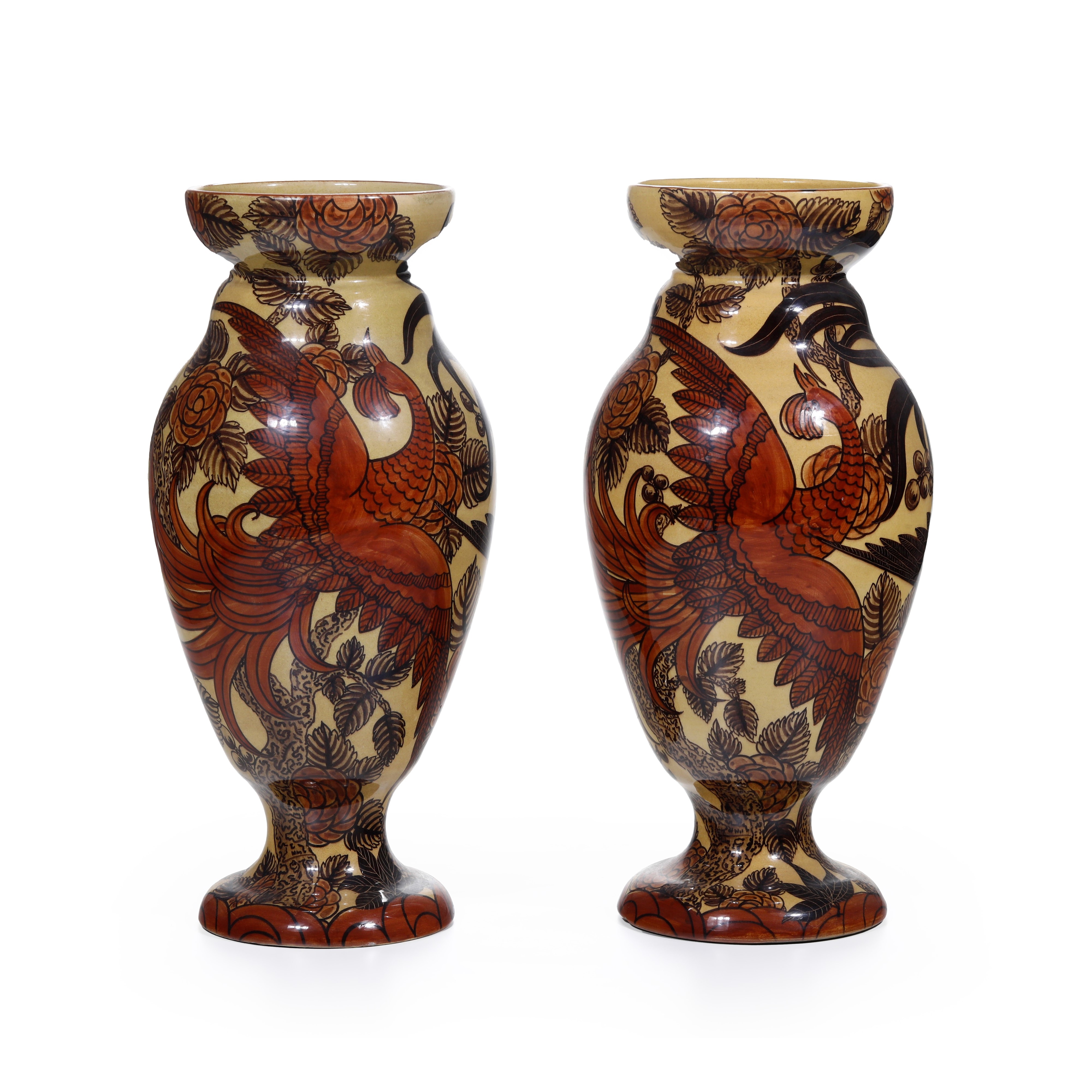 Coppia di vasi. Albisola, Manifattura Fenice, XX secolo.