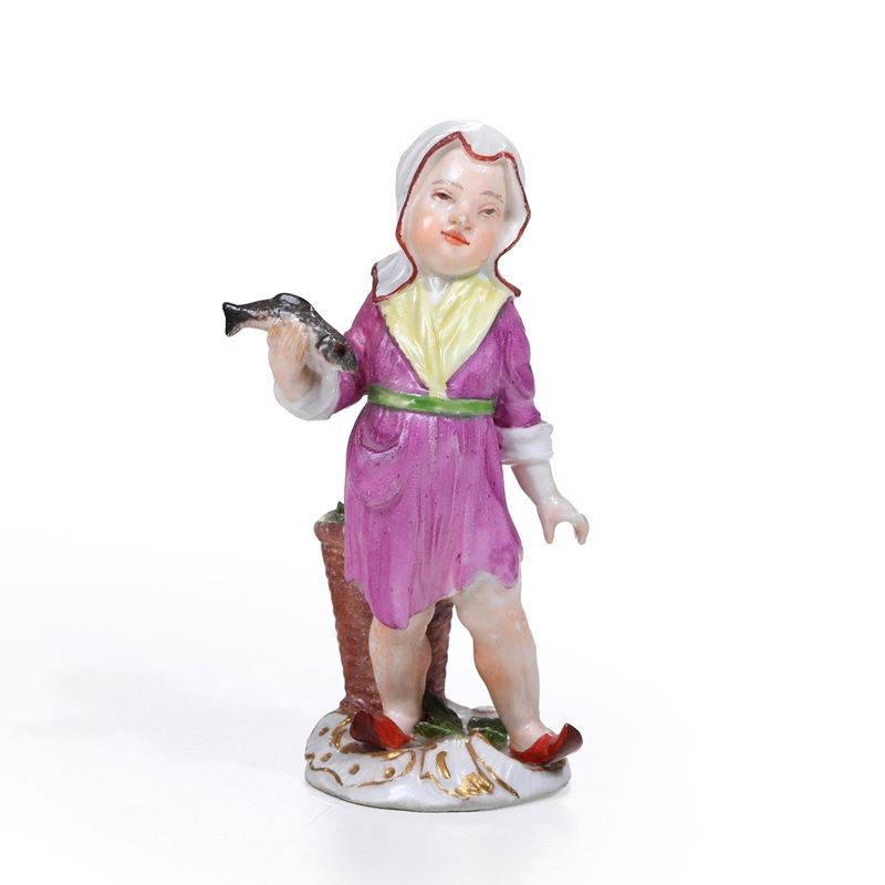 Figurina di bimbo pescivendolo. Meissen, 1750 circa.