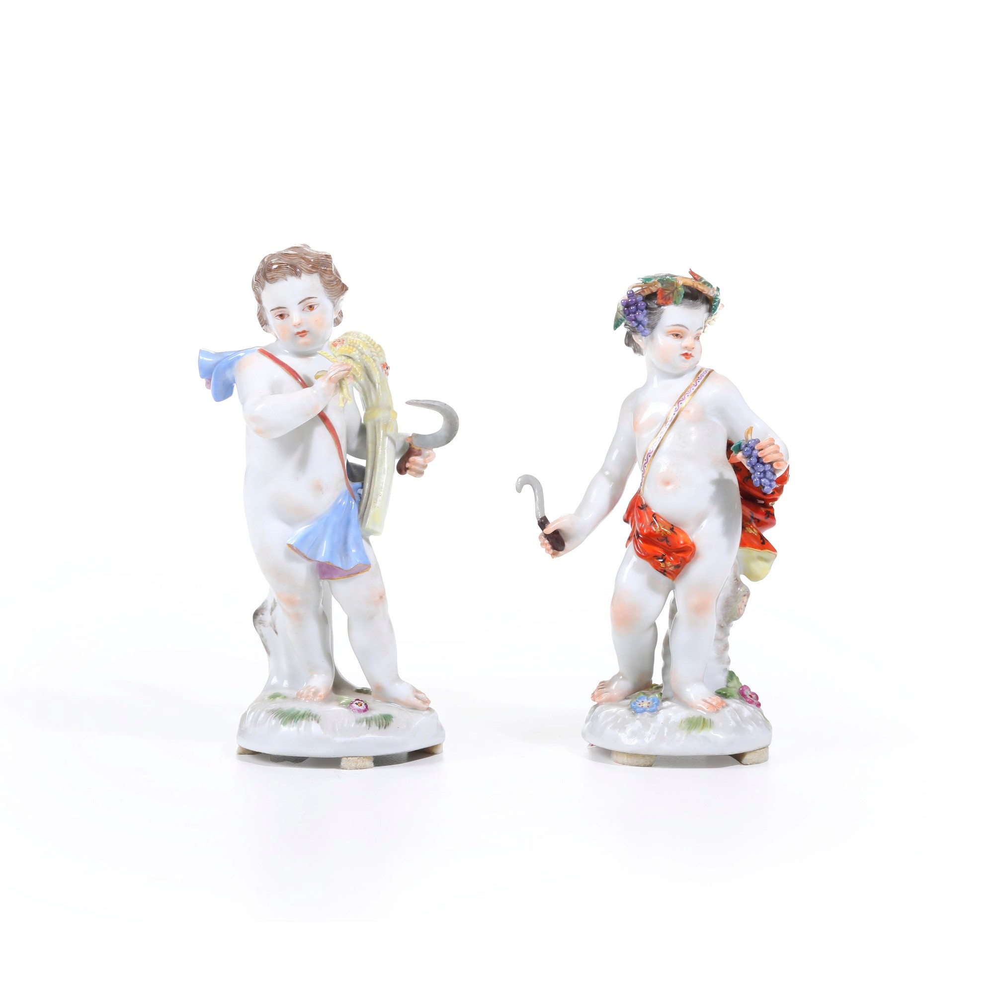 Figurine allegoriche dell’estate e dell’autunno. Meissen, XX secolo.
