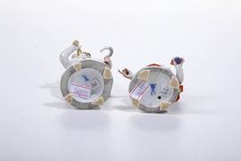 Porcellana. Marca: spade in blu. Altezza: cm 13,8; cm 13. Conservazione: ottima; un falcetto restaurato.