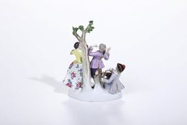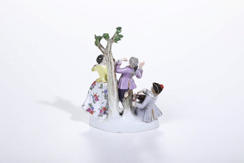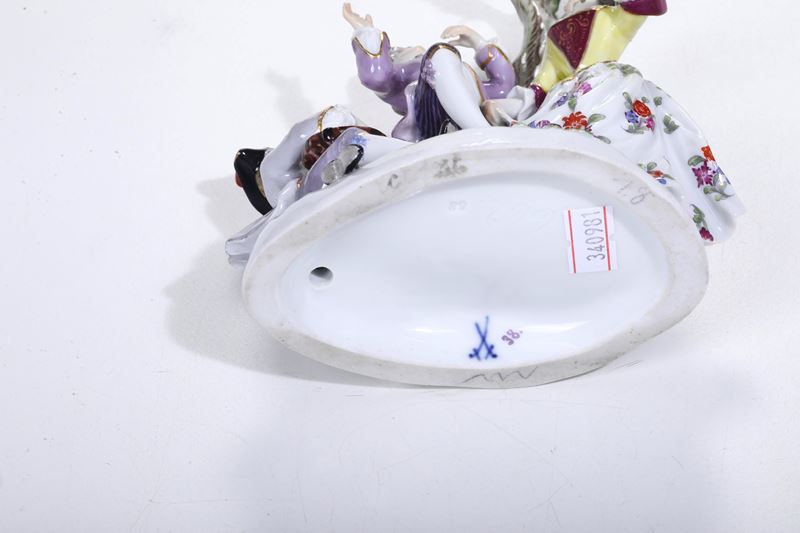 Porcellana. Marca: spade in blu “n. 662” inciso. Altezza cm 16,8. Conservazione: ottima; mancanza di un dito e mancanze minori alla vegetazione