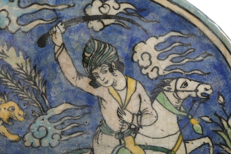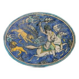 Targa raffigurante la caccia al leone. Persia, XIX secolo.