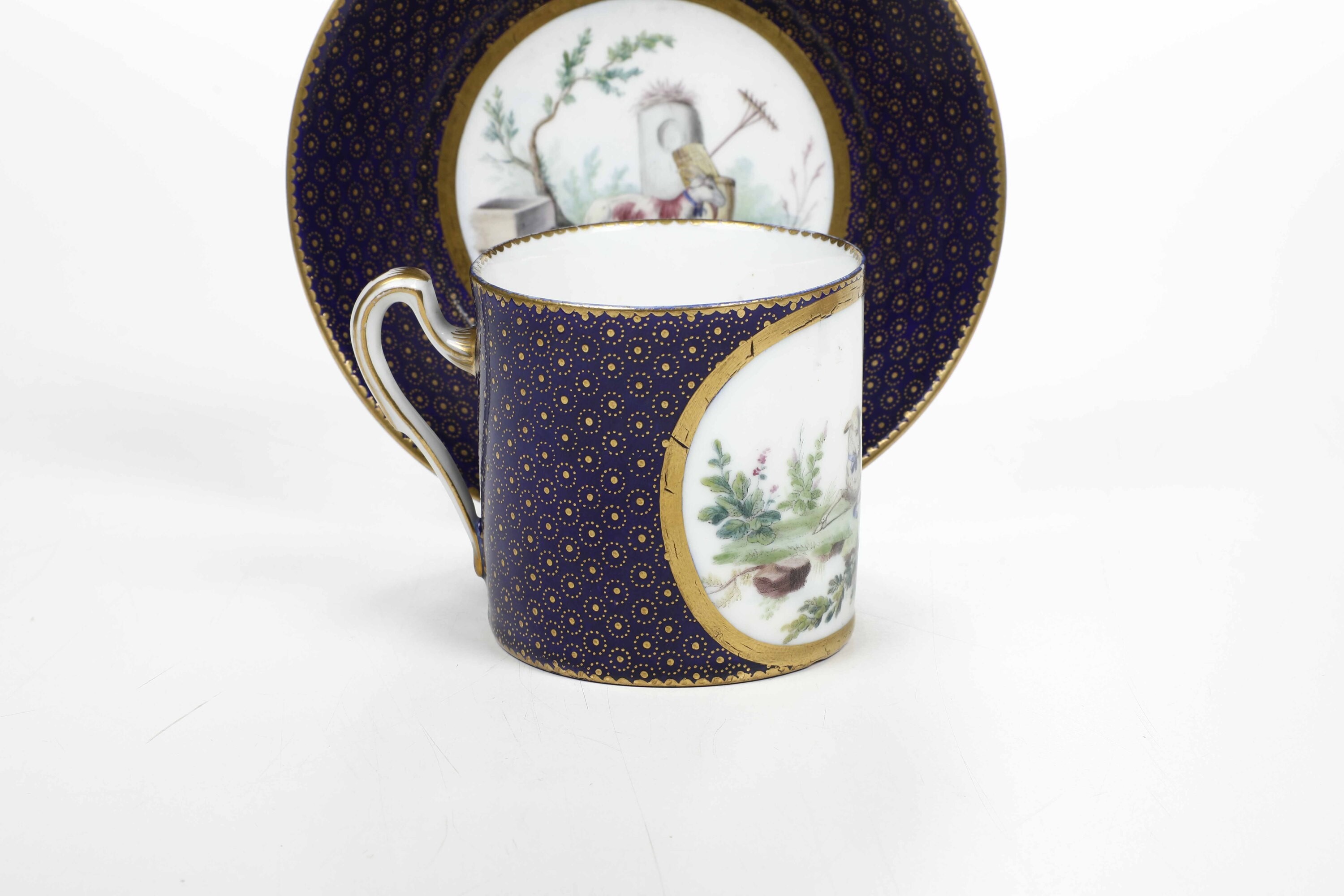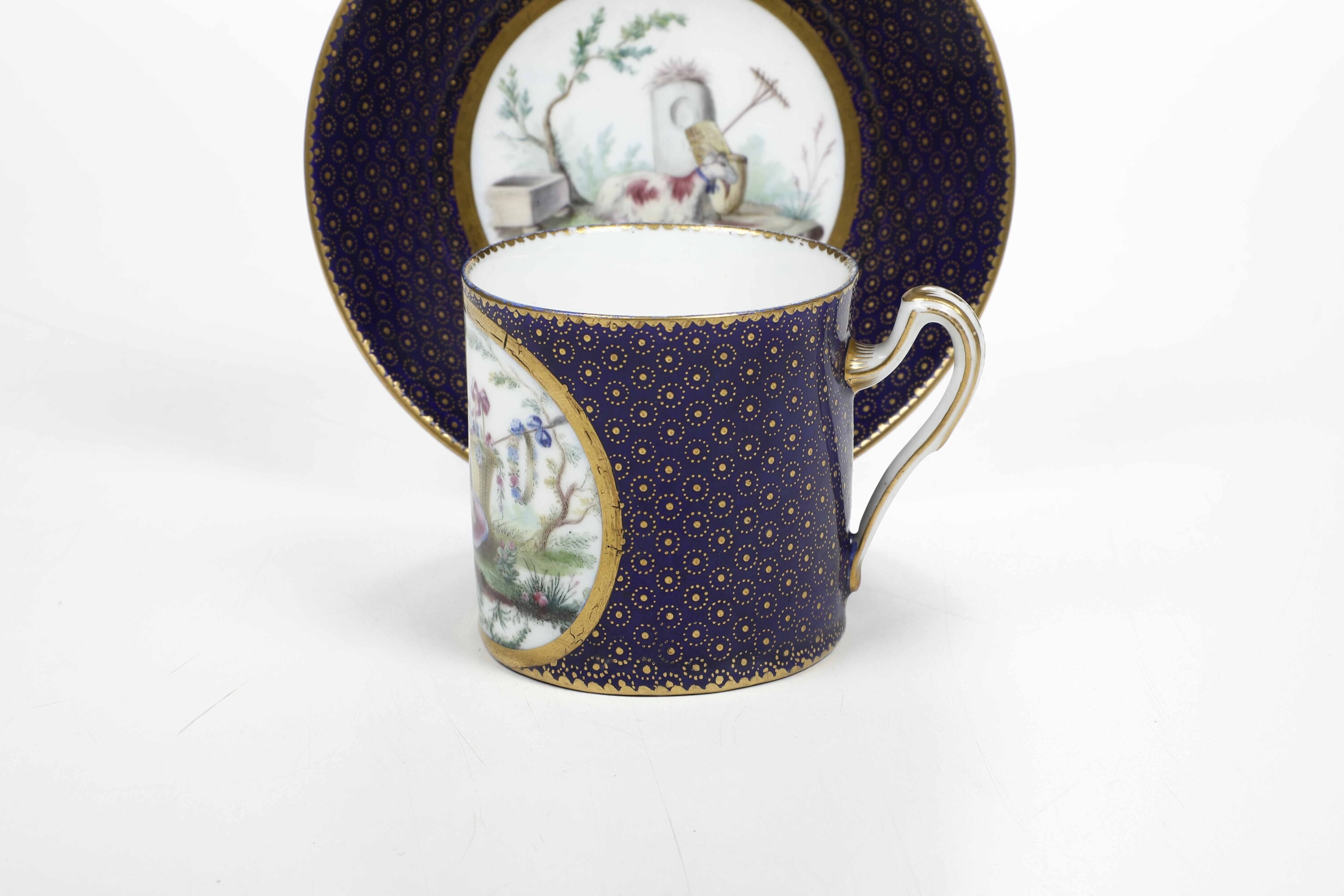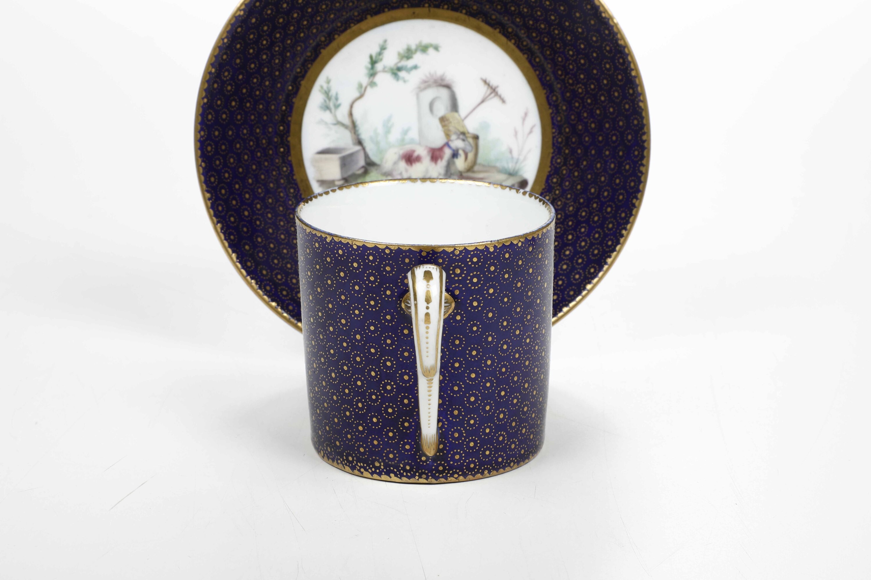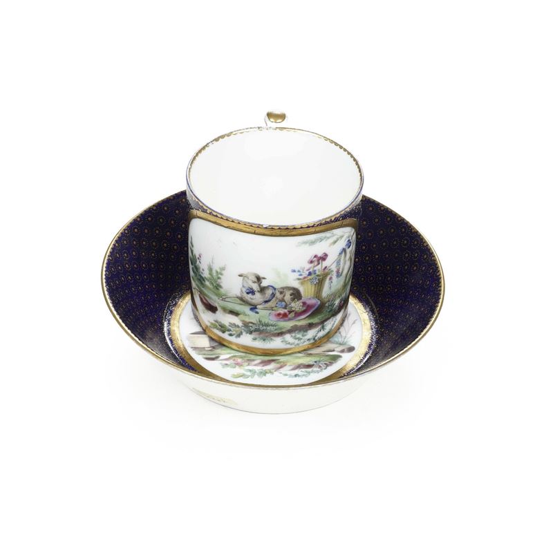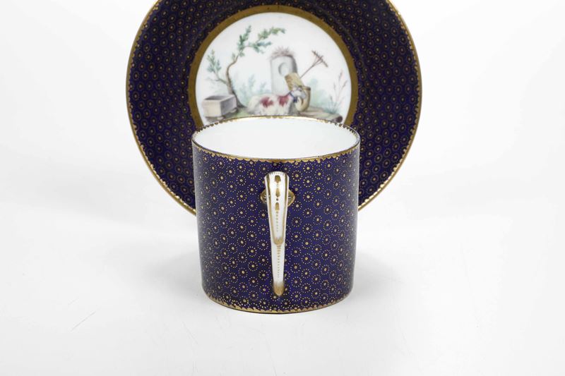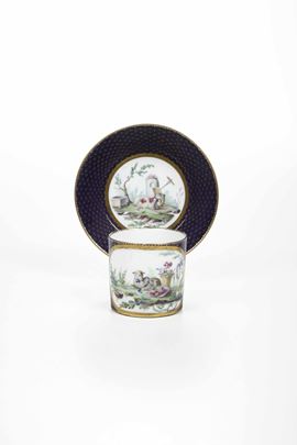 Tazza con piattino. Alla maniera o Sèvres, verso il 1790.
