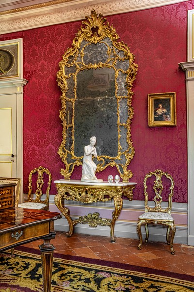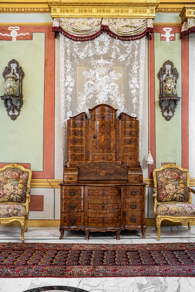Tra i tesori di Antiquariato in catalogo, una coppia di consolle con specchiere risalenti alla fine del XVIII secolo, finemente intagliate e dorate; una scrivania "alla Mazzarina", intarsiata con decori in stile Boulle del XVIII secolo, che testimonia l'eleganza e la raffinatezza del periodo; una selezione di poltrone e divani del XIX secolo, caratterizzati da legni laccati e dorati; uno scrittoio da centro con alzata, decorato ad arte povera, esempio pregevole dell’artigianato piemontese.