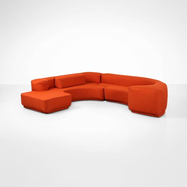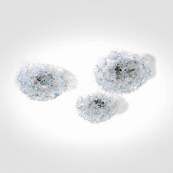 Il catalogo accoglie inoltre un importante divano modello Lara, progettato da Roberto Pamio, Renato Toso e Noti Massari per Stilwood nel 1968. Composto da due moduli in poliuretano espanso rivestiti in tessuto e dalle linee sinuose tipiche della sperimentazione di fine decennio, il lotto presenta una stima tra 3.000 e 5.000 euro. Per gli appassionati di illuminazione, una rara serie di tre lampade a plafone modello Esprit di Toni Zuccheri, realizzate da Venini intorno al 1970, combina una struttura in metallo cromato con elementi diffusori in vetro di Murano, anch’esse stimate tra 3.000 e 5.000 euro.
