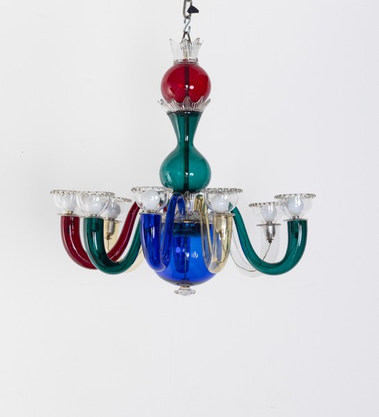 Coloratissimi corpi illuminanti animeranno l’asta, come le due applique Stilnovo in ottone (stima: 2.000 € - 4.000 €), la lampada a sospensione di Gio Ponti prodotta per Venini nel 1950 in vetro di Murano soffiato (stima: 5.000 € - 7.000 €) e la lampada plafoniera modello Sei Lune con struttura in ottone lucido, metallo laccato e diffusori ovali in vetro incamiciato progettata da Angelo Lelii (stima: 8.000 € - 12.000 €).