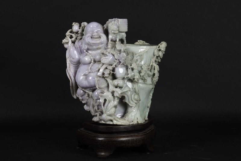 Accanto ad esso, si distingue un portapennelli in giadeite dalle delicate sfumature verde mela e lavanda, decorato con la figura di Budai e motivi di bamboo, realizzato in Cina durante la Repubblica nel XX secolo e stimato 8.000 – 12.000 euro, testimonianza della continuità della tradizione lapidaria asiatica e della sua costante capacità di reinventarsi nel tempo.
