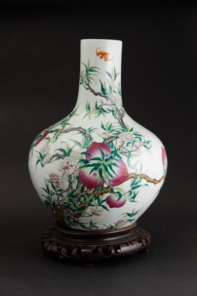 Non meno importante è un vaso in porcellana a nove pesche con pipistrelli, risalente alla Dinastia Qing durante il regno di Guangxu (1875-1908), che unisce la raffinatezza tecnica della manifattura alla potenza simbolica dei decori, legati a concetti di prosperità e fortuna. Stimato 6.000 – 8.000 euro, rappresenta uno degli oggetti più raffinati della produzione ceramica imperiale.