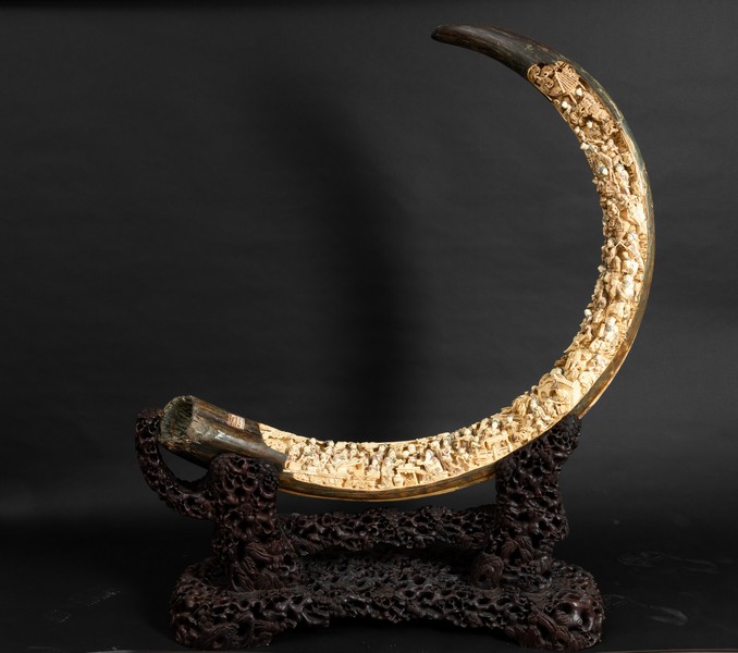 Chiude la selezione un’imponente zanna di mammut intagliata, decorata con una vivida scena di vita comune accompagnata da iscrizioni, opera del XX secolo che coniuga dimensione monumentale e attenzione per i dettagli, proposta in catalogo con una stima di 15.000 – 20.000 euro.