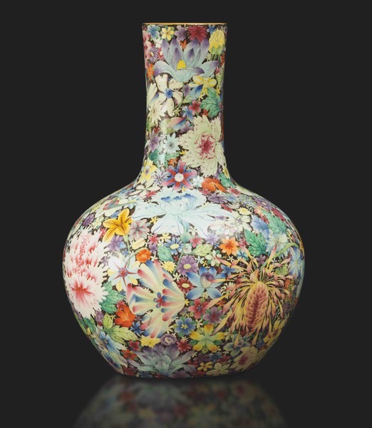 Ricordiamo anche una grande vasca da pesci in porcellana con base in bronzo, a decoro Doucai, ossia con gli otto saggi immortali, realizzata nell’epoca Qianlong (stima: € 12.000) e un importante incensiere cloisonné di committenza imperiale realizzato in bronzo con decoro floreale, coperchio traforato e rifinito con decoro a draghi tra le nuvole in oro zecchino, sempre di epoca Qianlong (stima: 10.000 euro). Infine un vaso Tianqiuping Famiglia Nera in porcellana con decoro millefleures, di epoca Guangxu (predecessore di Puyi, l’ultimo imperatore della Cina) con marchio apocrifo Qianlong (stima: € 8.000).