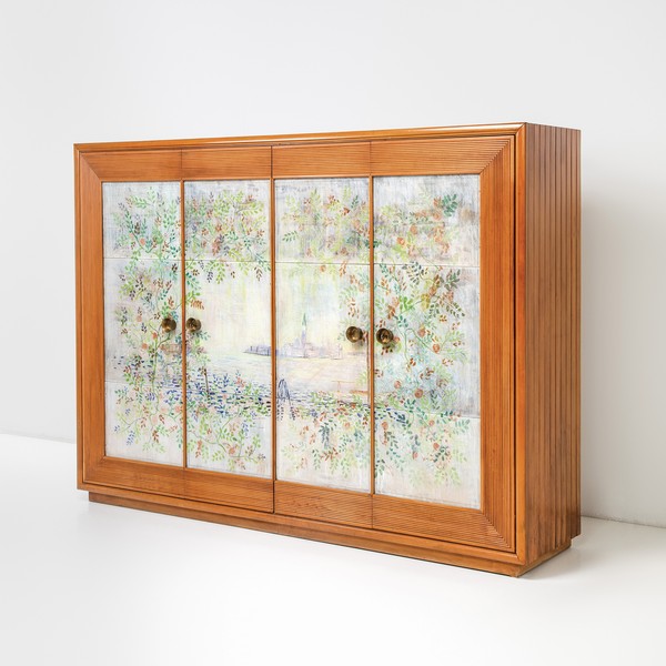 Meritano una segnalazione anche altri tre lotti di assoluta eccellenza: la coppia di sedie pieghevoli modello Singer di Gio Ponti con un’elegante struttura in legno e rivestimenti in tessuto, prodotte da Cassina/Fratelli Reguitti nel 1953 (stima: 8.000 / 12.000 €), il mobile contenitore del 1988 con struttura in legno dorato e radica e dettagli in metallo cromato e ottonato di Ettore Sottsass (stima: 7.000 / 9.000 €), e il grande mobile contenitore firmato da Osvaldo Borsani con struttura in legno impreziosito da ante con decoro dipinte da Adriano Spilimbergo (stima: 6.000 / 8.000 €).