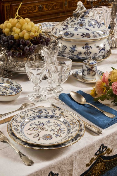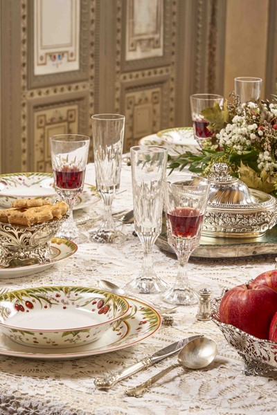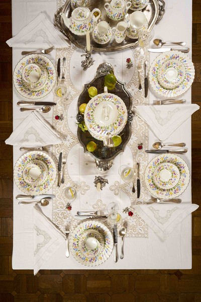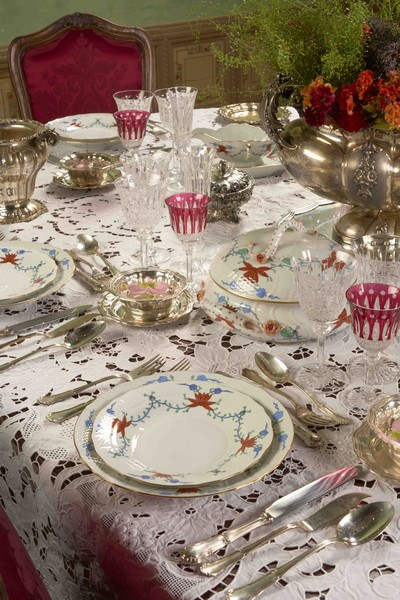 Porcellane Richard Ginori e Meissen, cristalli Saint Louis, tovaglie in pizzo di Burano