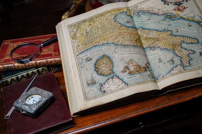 Altro pezzo eccezionale, il Theatrum orbis Terrarum (Anversa, 1571-1573) di Ortelius Abrams, qui presente in una pregevole seconda edizione contenente 71 carte finemente colorate a mano.