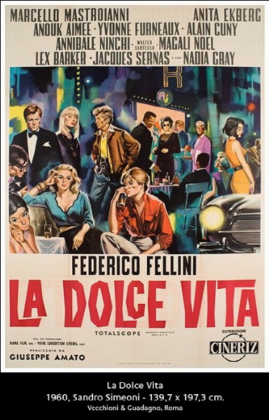 Altro pezzo di grande rilevanza è il manifesto di “La Dolce Vita” realizzato da Sandro Simeoni nel 1960 per il capolavoro di Federico Fellini, stampato dalla storica tipografia Vecchioni & Guadagno di Roma, stimato tra 8.000 e 10.000 euro.