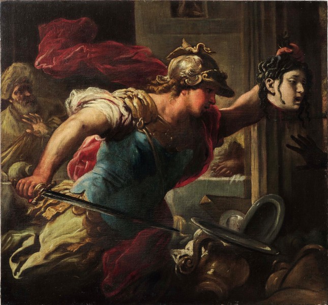 Accanto a questo capolavoro si colloca il Battesimo di Clorinda di Andrea Vaccaro (Lotto 258), opera siglata e confermata dal Prof. Nicola Spinosa, rappresentativa della fase classicista dell’artista dopo il 1650, in dialogo con Cavallino e con la cultura napoletana dell’epoca. Di grande fascino anche la Musa Clio di Alessandro Tiarini (Lotto 248), esempio compiuto della sua pittura morbida e luminosa, sospesa tra classicismo bolognese ed eleganza narrativa. A questi si aggiunge il prezioso rame di Bernardo Strozzi con la Crocifissione (Lotto 271), noto come “Crocifissione Viezzoli”: un’opera rara per dimensioni e qualità, caratterizzata da una sorprendente resa del cielo e da una drammaticità temperata da fine dolcezza emotiva. Il percorso si arricchisce ulteriormente con il Perseo combatte contro Fineo e i suoi compagni di Luca Giordano (Lotto 257), riconducibile al periodo spagnolo del maestro, e con l’intenso Ecce Homo di Jusepe de Ribera (Lotto 246), riferibile agli anni 1630-1632, testimonianza della sua piena maturità espressiva e dell’evoluzione dal naturalismo al pittoricismo di ascendenza neoveneta.