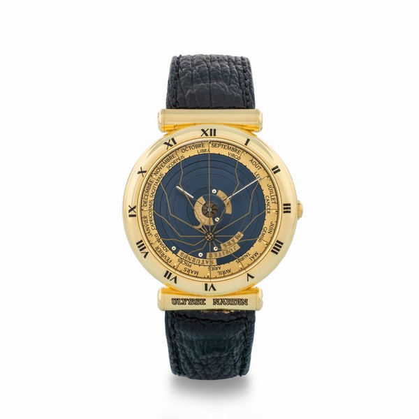 L’universo di Copernico è celebrato dall’Ulysse Nardin Planetarium Copernicus ref. 821-22, un segnatempo del 1998 che fonde arte e scienza. Questo orologio astronomico, realizzato in oro giallo, presenta un quadrante blu notte che illustra il movimento dei pianeti secondo il sistema eliocentrico. Con una stima compresa tra 18.000 e 25.000 euro, rappresenta un omaggio alla tradizione orologiera e al genio scientifico.