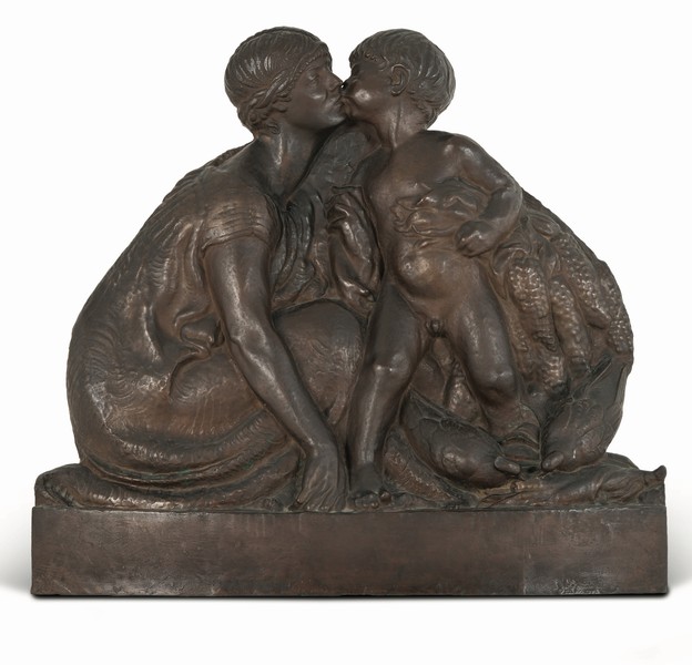 La tornata dedicata alla scultura propone una selezione che documenta l’evoluzione del linguaggio plastico dal rigore formale del classicismo ottocentesco fino alle opere più concettuali del secolo successivo. Tra i lotti più significativi spicca il Lotto 113, Marcellina di Attilio Selva, un raffinato modello in gesso e cera su base in marmo cipollino, datato 1919 e siglato sul retro, stimato € 1.500 – 2.000. Il Lotto 114, Amore materno di Antonio Maraini, è un elegante bronzo fuso, firmato e datato 1920, di grande forza plastica, con una stima di € 4.000 – 6.000.