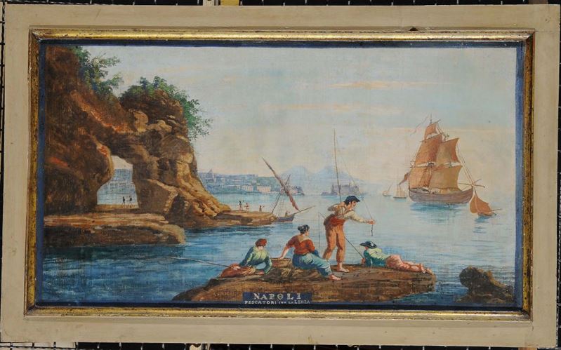 Anonimo del XIX secolo Napoli, pescatori con la lenza