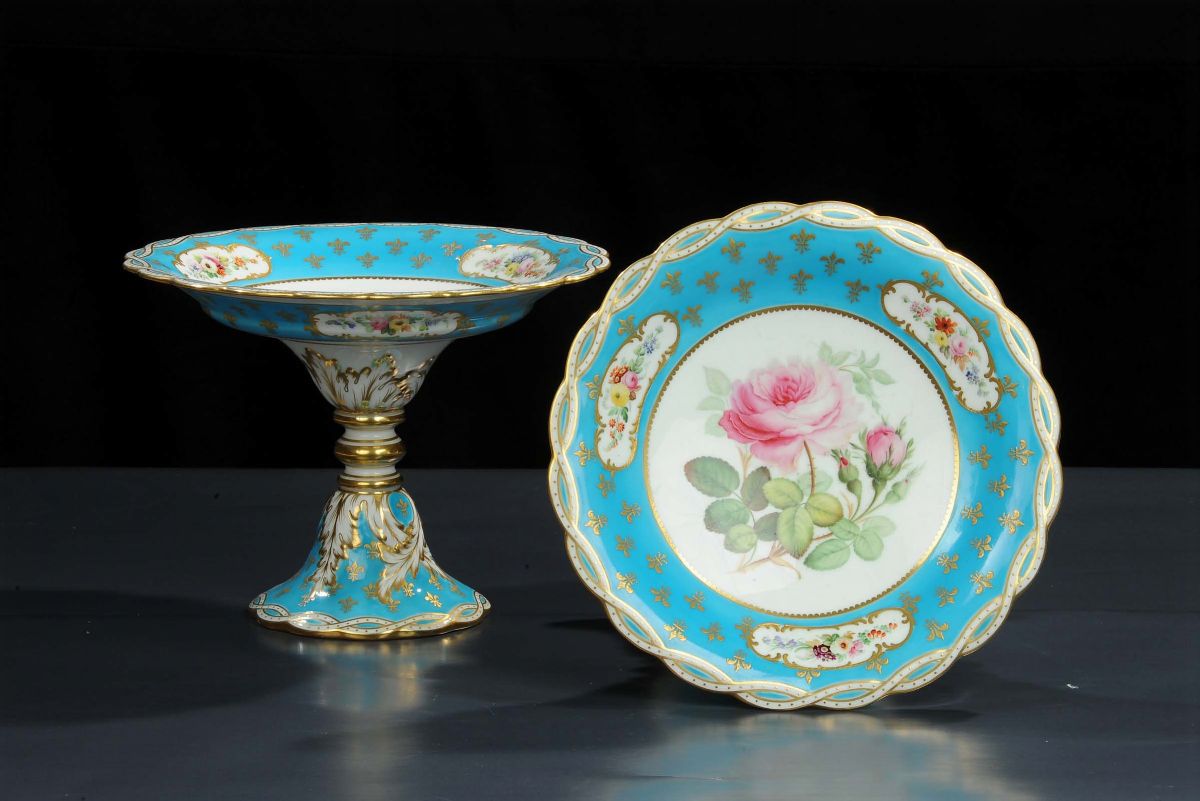 Coppia di alzatine in porcellana policroma Francia metˆ XIX secolo