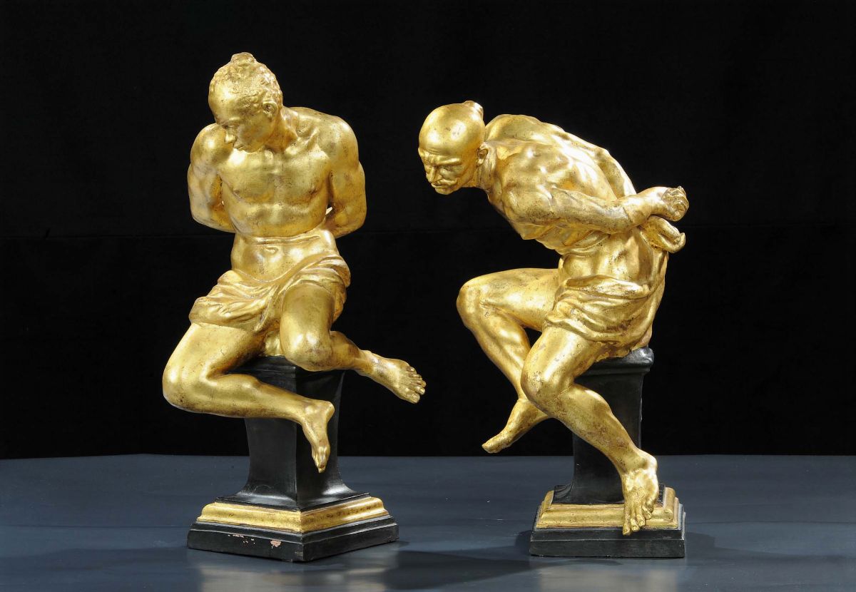 Coppia di mori in terracotta dipinta ad oro, XIX secolo