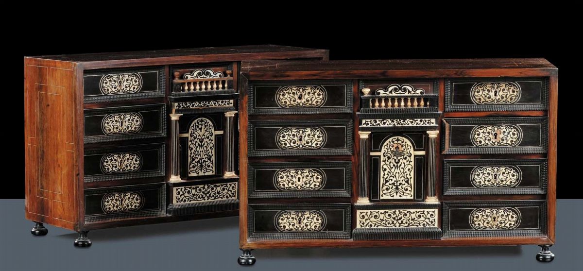 Coppia di stipi monetieri in palissandro, Italia fine XVII secolo