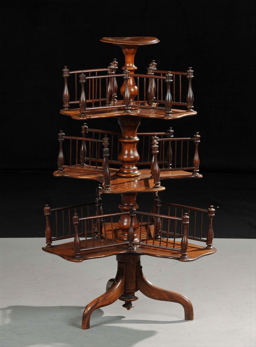 tre ripiani girevoli con ringhierine, altezza cm 96 (difetti)