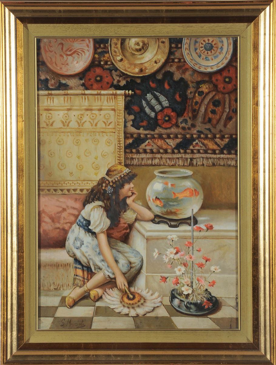 Giovanni Muzzioli (1854-1894), stile di Bambina con pesci