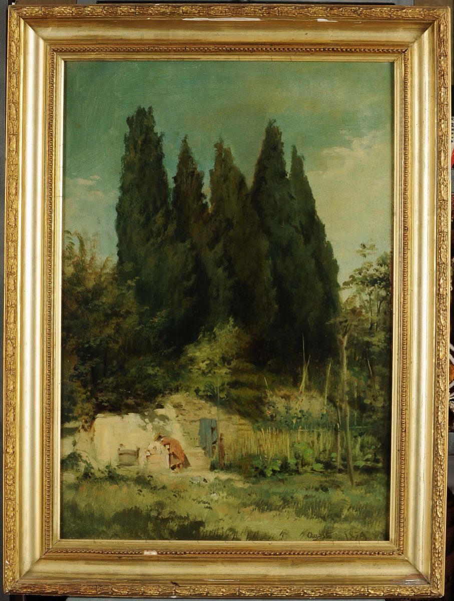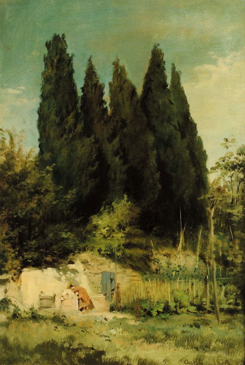 Lodovico Raymond (1825-1898) Paesaggio con cipressi, 1879