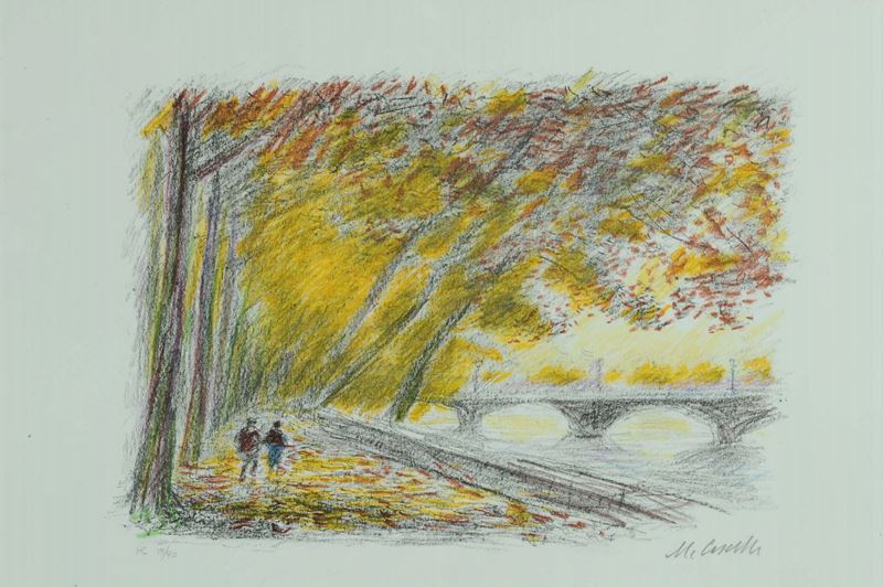 tre litografie, da cm 10x15 a cm 25x33, firmate in basso