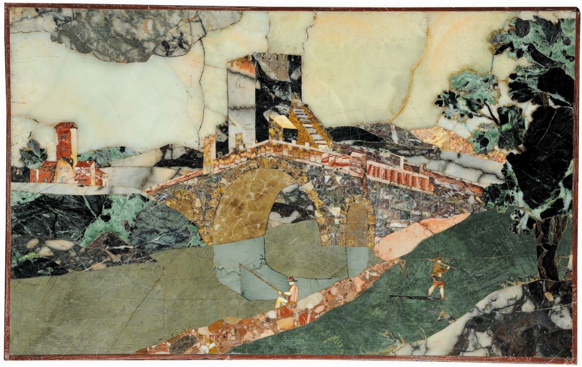 Placca in ardesia con applicazione di marmi policromi, XVIII secolo