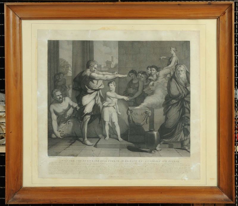 Quattro stampe in cornice con scene romane, XIX secolo
