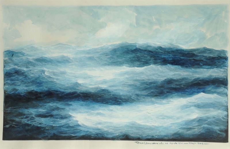 acquerello su carta, cm 41x68, firmato e datato in basso a destra