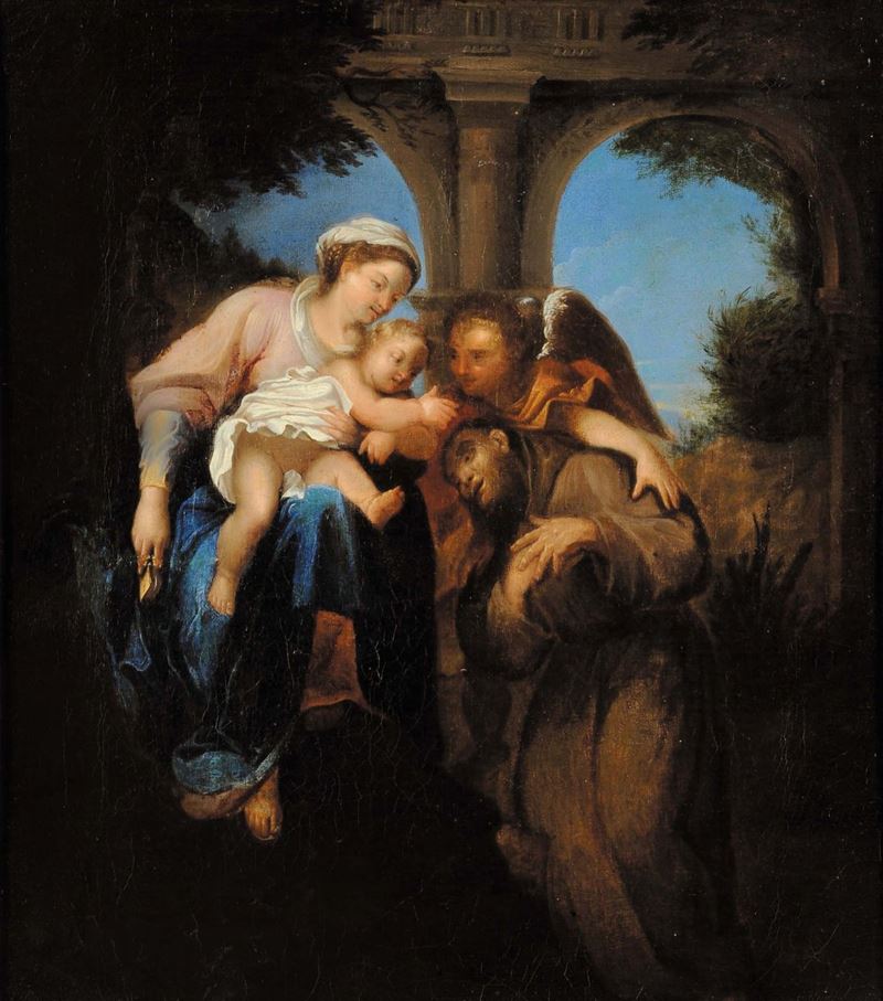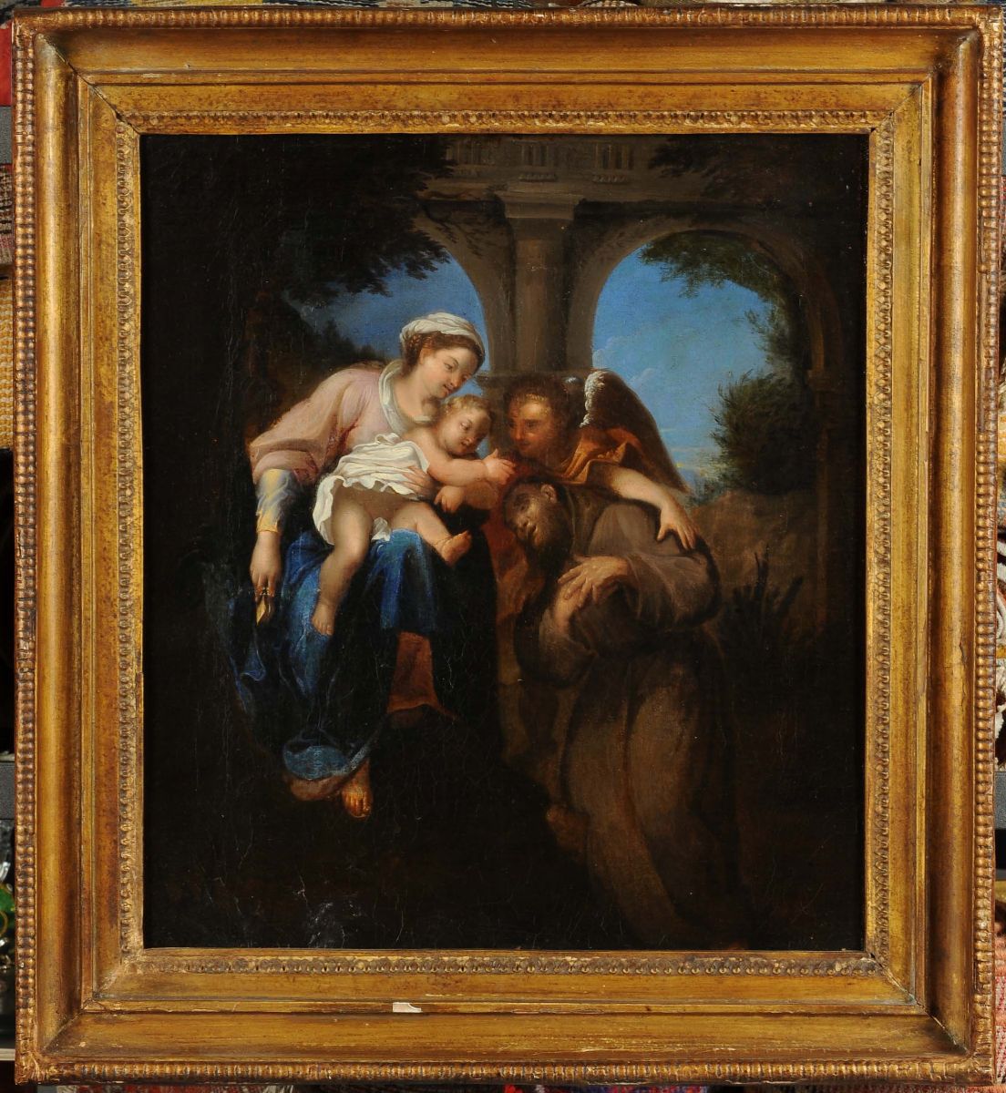 Scuola del XVIII secolo Madonna con Bambino, San Francesco ed angelo