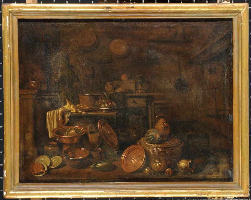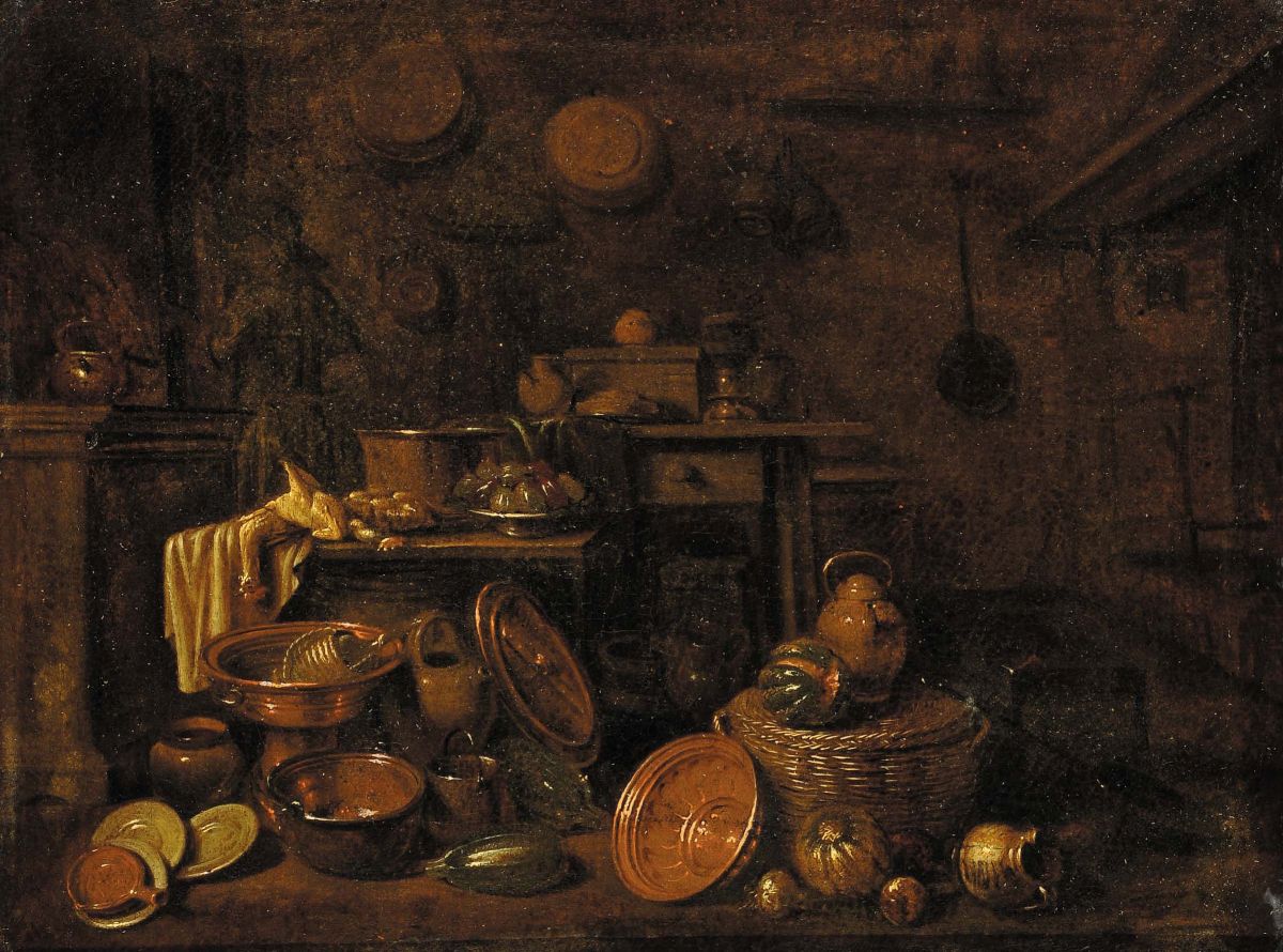 Scuola del XVIII secolo Natura morta con elementi in rame