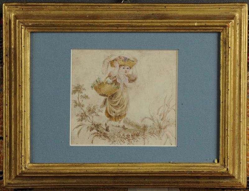 coppia di tempere su carta, cm 8x9 e cm 8,5x9