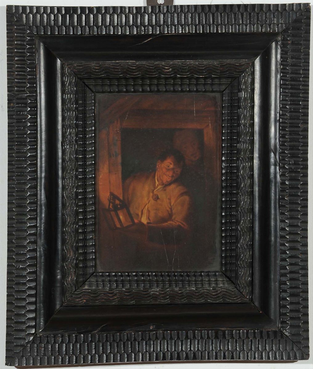 Scuola Fiamminga del XVII secolo Figure con lanterna