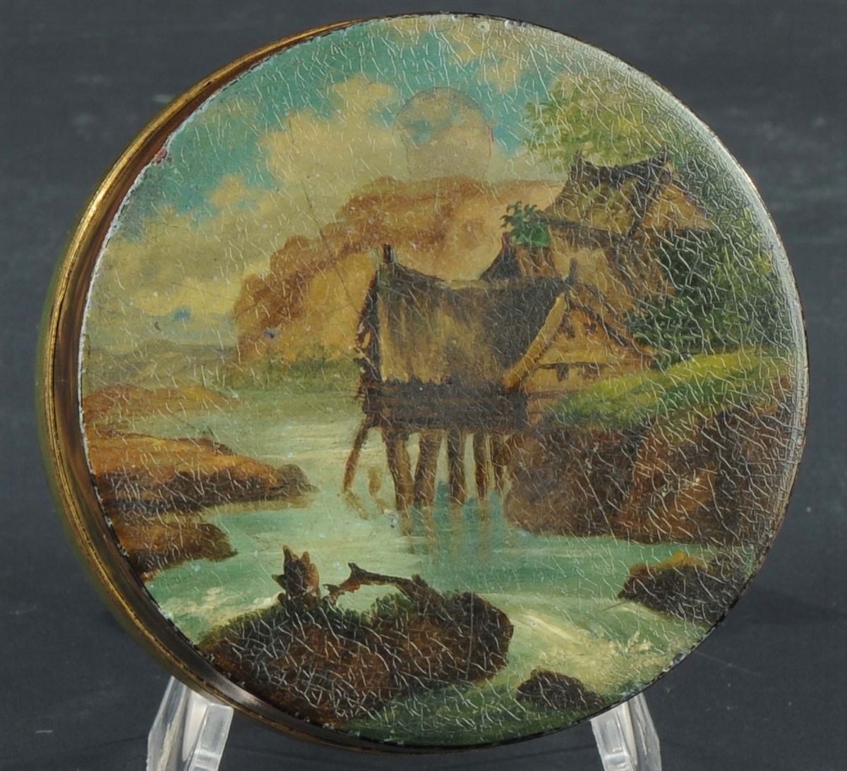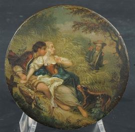 raffigurante scena galante e paesaggio sul verso, diametro cm 8
