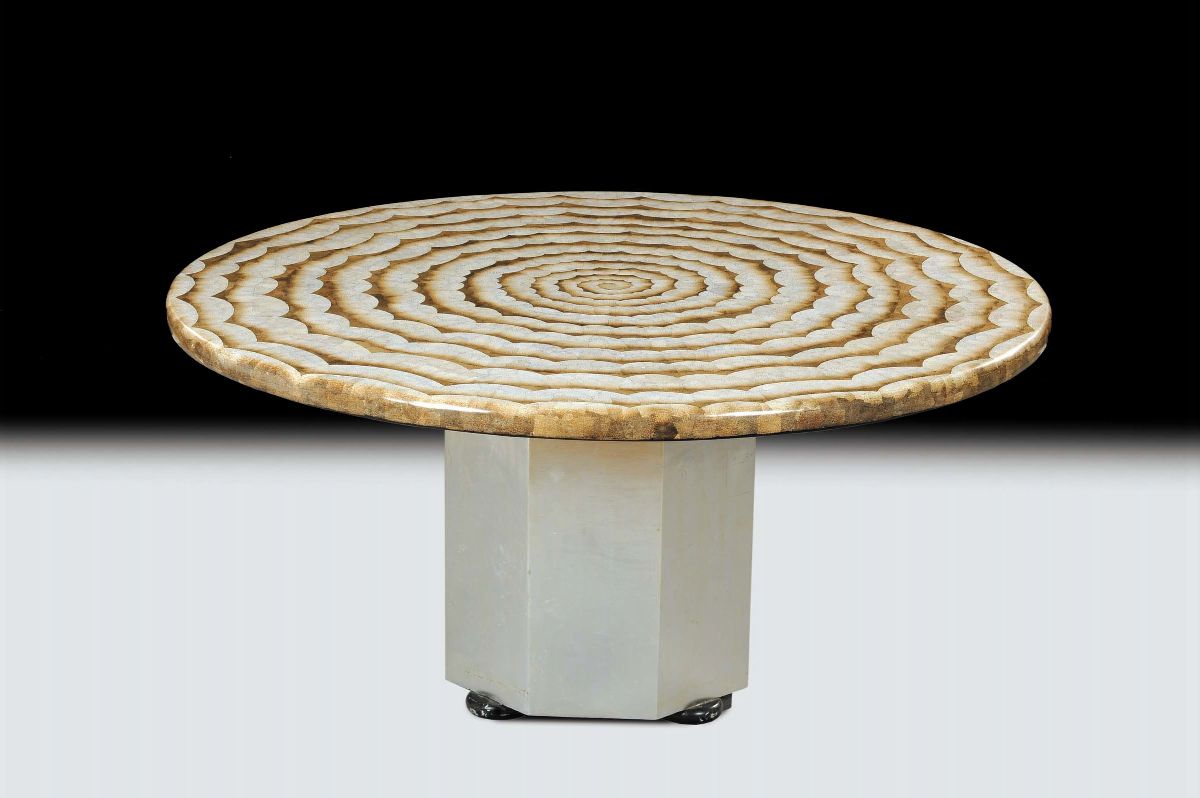 Alberto Pinto (attr.)Grande tavolo circolare su parallelepipedo ottagonale