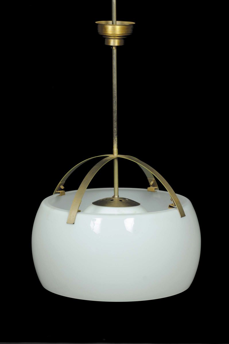 della serie ÒOmegaÓ.Struttura portante in ottone nichelato, globo diffusore in opaline. Produzione 1966diametro cm 45, altezza cm 100