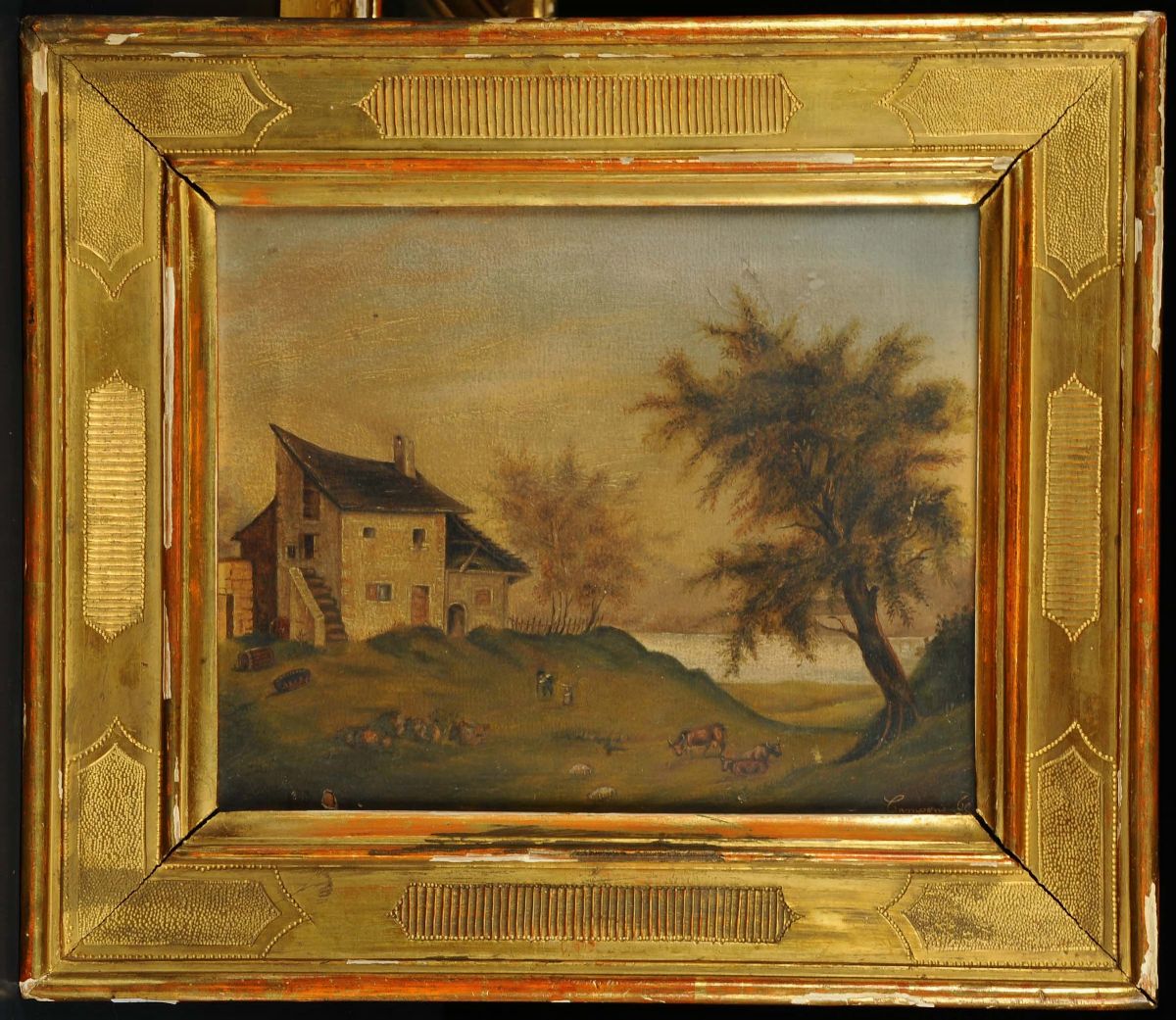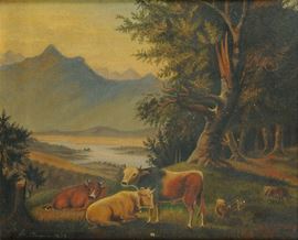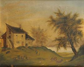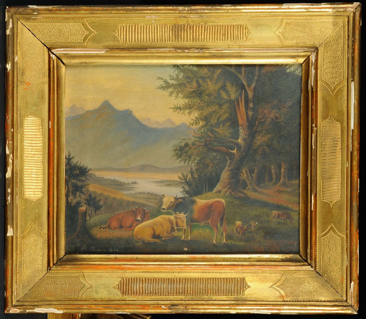coppia di dipinti ad olio su tela, uno firmato e datato 1869