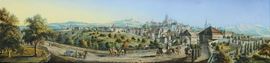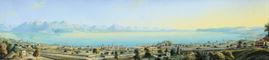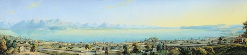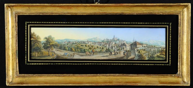 raffiguranti paesaggio svizzero con lago e veduta di cittˆ svizzera, cm 12x50