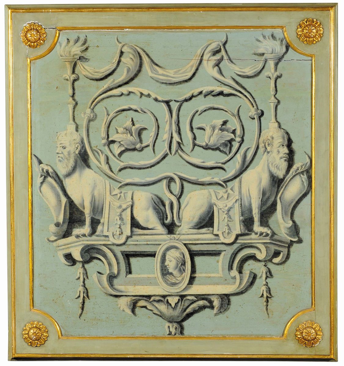 Coppia di pannelli in legno con grottesche
