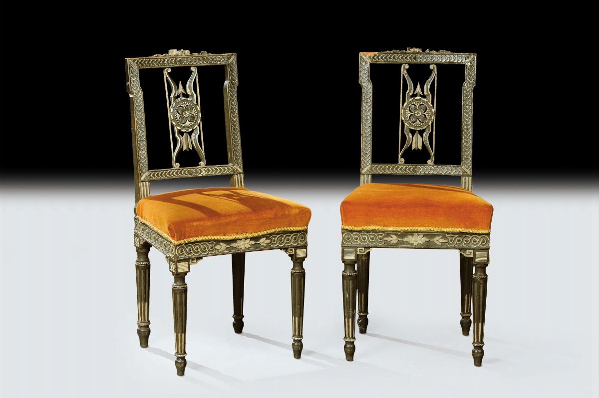 Coppia di sedie Luigi XVI intagliate e laccate, fine XVIII secolo