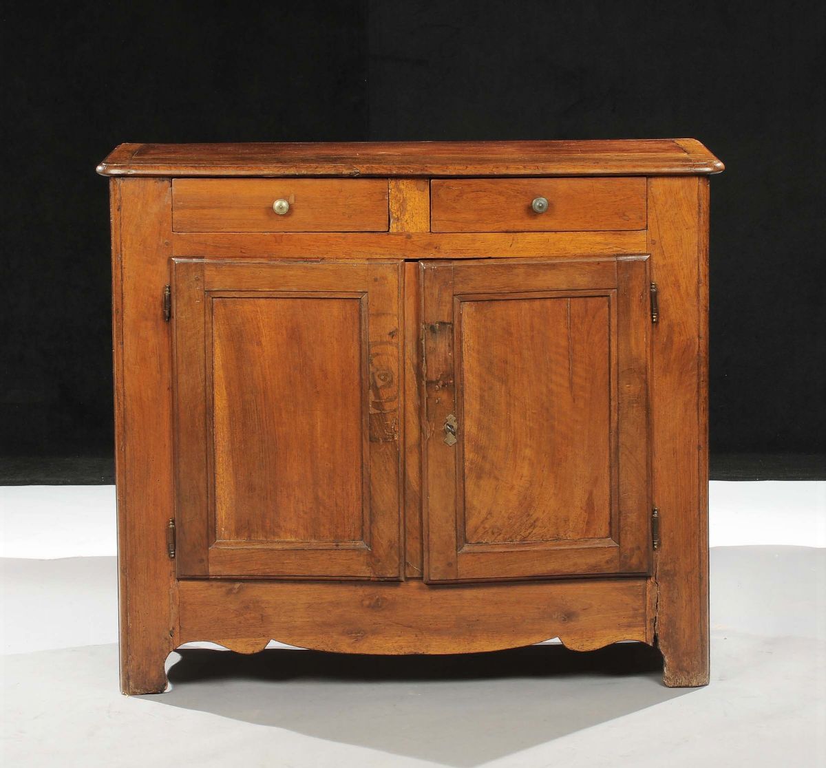 Credenza a due ante e due cassetti in legno di noce, XIX secolo