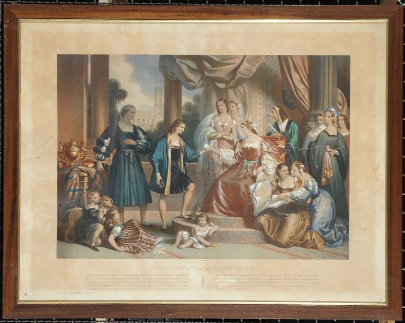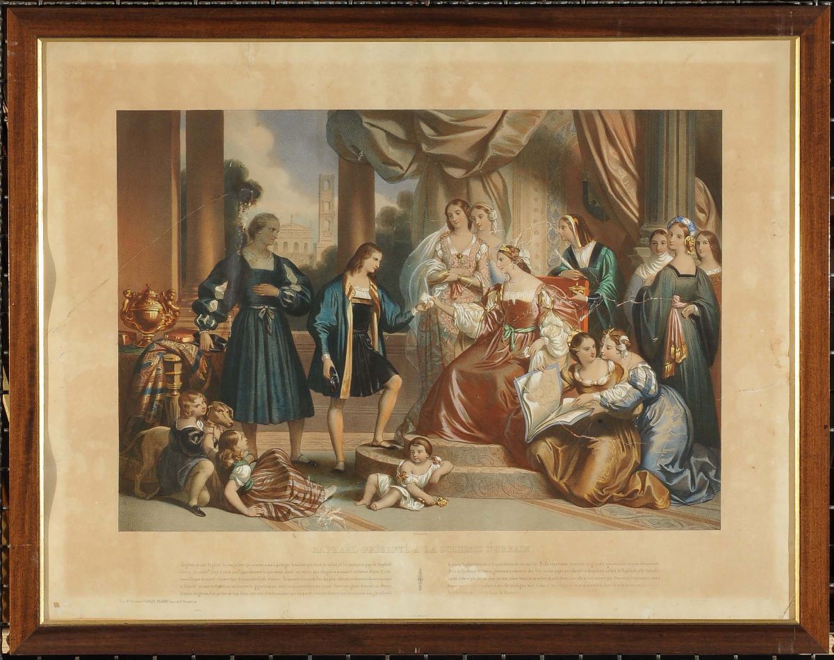 Due stampe differenti raffiguranti Francesco da Moncada e Raffaello a corte